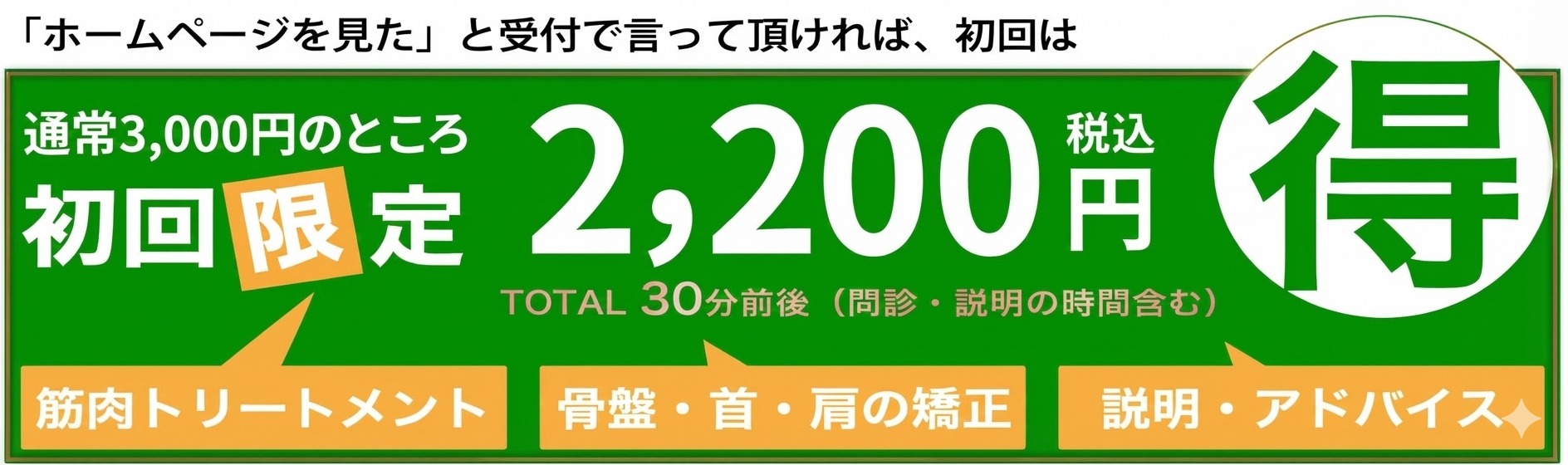 - 受付順に施術させていただきます。予約制ではありませんので、受付時間をご確認のうえ、受付時間内にお越しください。